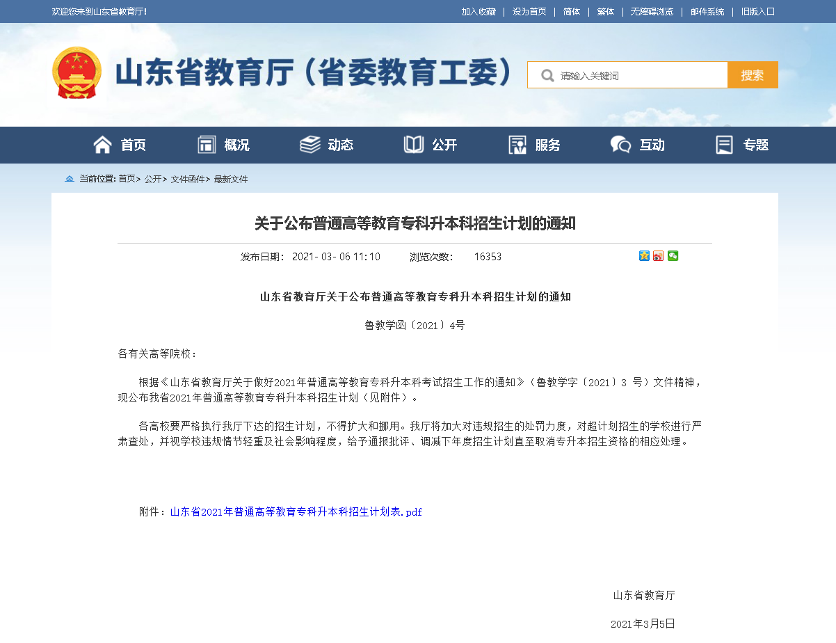 日前,省教育廳發布了《關于公布普通高等教育專科升本科招生計劃的通知》,公布了我省2021年普通高等教育專科升本科招生計劃。