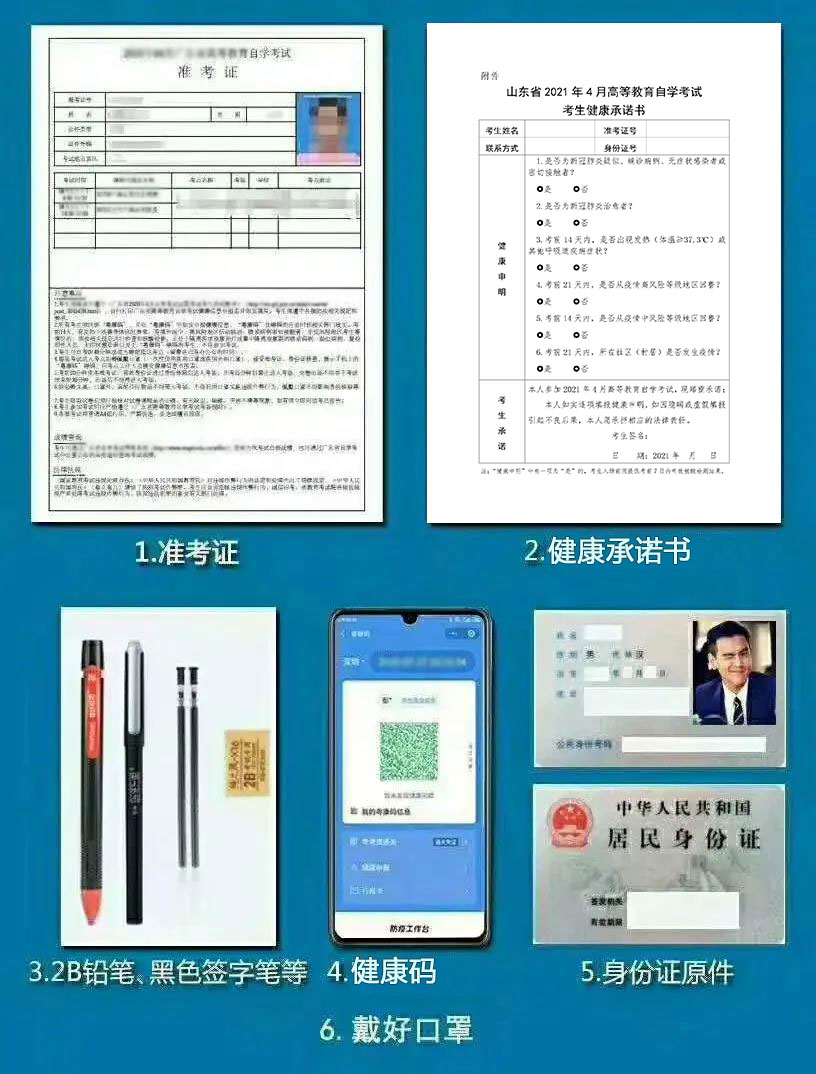 健康碼(綠色)、承諾書(每科考試都需要交一張,多打印幾張備用)、其它必要的健康證明材料、口罩。