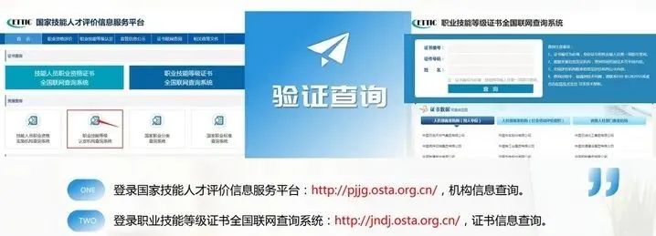 登錄職業技能等級證書全國聯網查詢系統:http://jndj.osta.org.cn/,證書信息查詢。