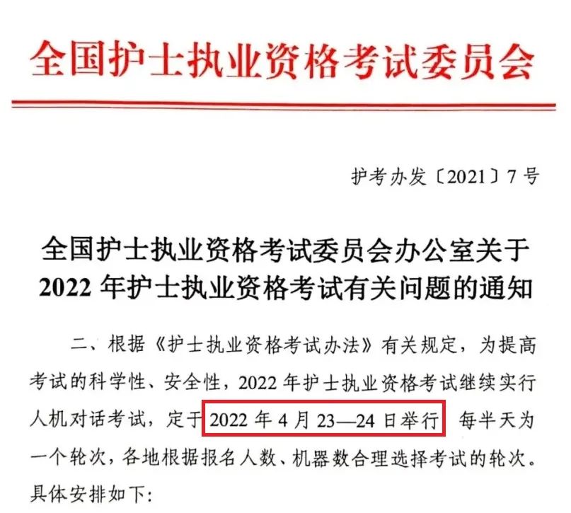 中國衛生人才網官方發布,2022年全國護士資格考試考試時間確定,考試在4月23日-24日舉行。