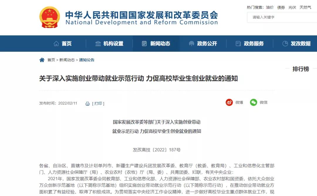 2022屆全國高校畢業生預計1076萬人,年度人數首次超過千萬人。如何解決千萬高校畢業生就業創業問題?日前,國家發改委等八部門聯合印發《關于深入實施創業帶動就業示范行動力促高校畢業生創業就業的通知》(點擊文末“閱讀原文”查看《通知》全文)。