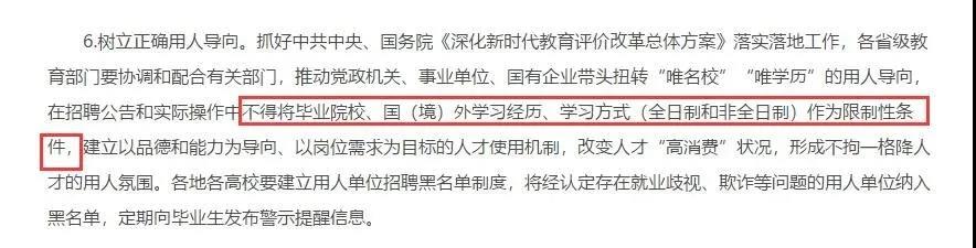 招聘公告中不得以學習方式(全日制、非全日制)作為限制性條件