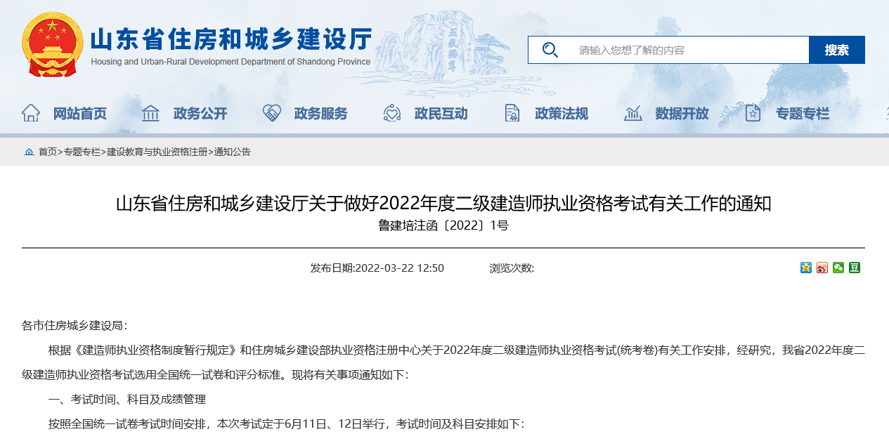 (五)準考證打印時間:報考人員需登錄“山東省建設從業人員管理系統”打印準考證,打印時間:2022年6月6日9:00至6月12日9:00。