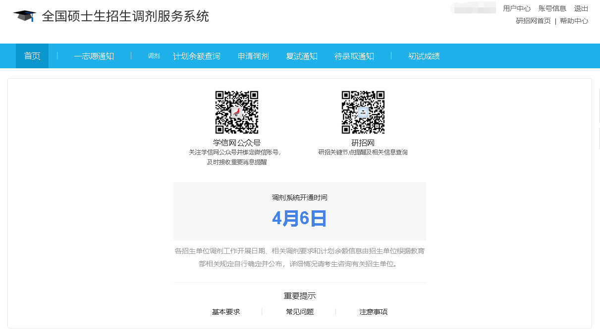 各位考生,研招網(wǎng)上調(diào)劑服務(wù)系統(tǒng)今日開通啦!