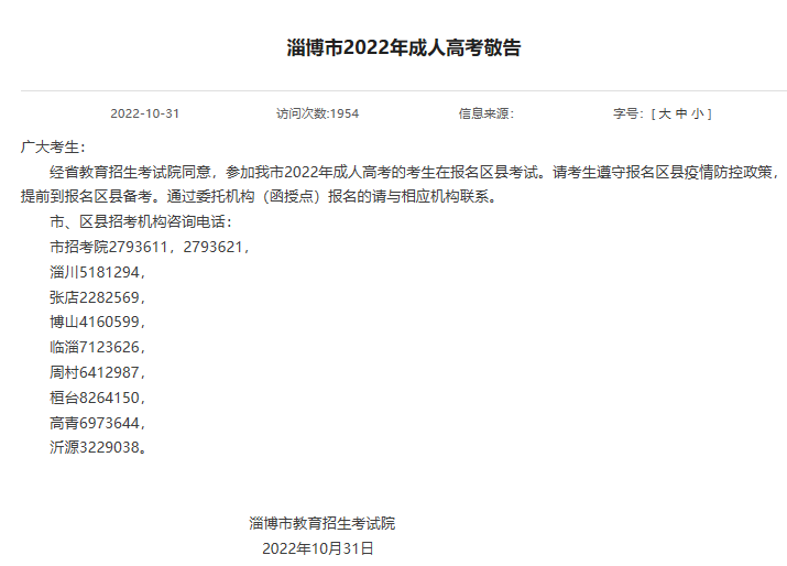 淄博市本周末舉行的成人高考統(tǒng)一入學(xué)考試改為在報名區(qū)縣考試