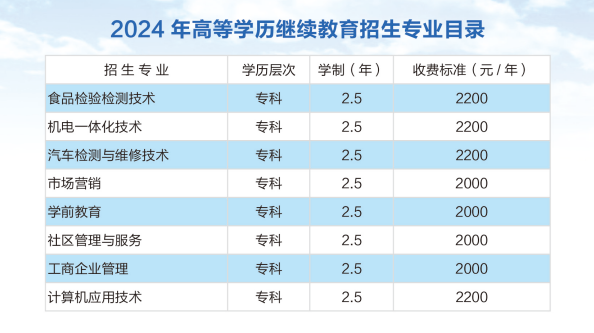 威海職業學院是一所全日制公辦普通高等職業學校,2000 年10月經山東省人民政府批準、教育部備案成立。學校是首批 28 所 “國家示范性高等職業院校”之一,是國家高技能人才培養示范基地。2019 年7月被教育部認定為優質專科高等職業院校,12 月被教育部、財政部公布為中國特色高水平高職學校和專業建設計劃建設單位。威海職業學院高等學歷繼續教育目前開辦高中起點專科食品檢驗檢測技術、機電一體化接肉、汽車檢測與維修技術、市場營銷、學前教育、社區管理與服務、工商企業管理、計算機應用技術等8個專業