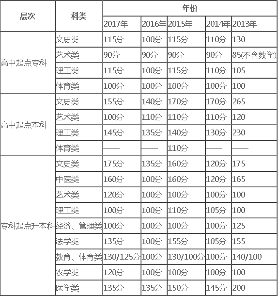 下面是整理的從《2013年-2017年山東省成人高考歷年錄取分數線》供您查閱。?