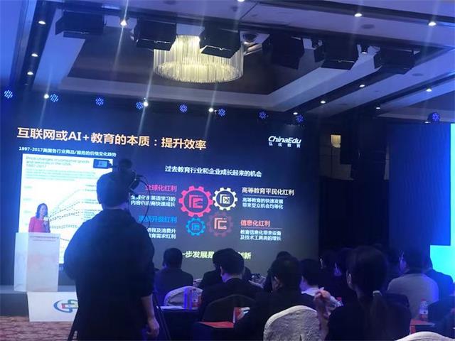 弘成教育董事長黃波以《人工智能驅動在線教育生態變革》為題分享了人工智能驅動下在線教育生態的變革。新一代技術應用和AI會使教育行業空前爆發,教育行業也將面臨機會和挑戰。她指出信息化下一步一定是智能化,互聯網或AI+教育的本質是提升效率。弘成在AI學習應用模塊也做出卓有成效的探索,以數據先行,讓人工智能落地。目前,弘成結合“機器學習”模型,通過運用一系列先進算法,在自適應學習平臺、智能刷題和排課等領域都已經有落地應用。作為第一家在美國NASDAQ上市的在線教育企業,弘成年服務70余萬在校學生,累積超過1000萬,服務近100所合作高校,近200家學習中心,弘成定位“好學歷+好工作=好未來”,為網絡學歷+職業教育+企業培訓提供全面的產品解決方案。黃波還向在場嘉賓展現了弘成大數據和人工智能全景圖。“我希望未來十年,我們和在座同仁一起,通過智能化、信息化手段和技術創新,為行業、企業和高校帶來更多的價值。”