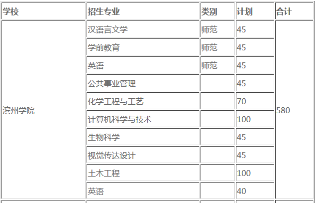 1.濱州學院招生專業(yè)