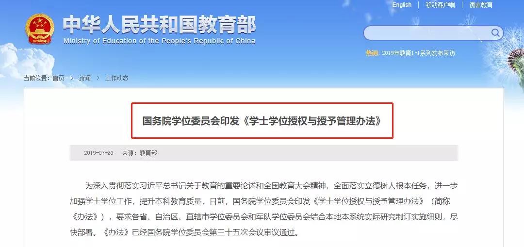 日前,國務院學位委員會印發了一則重要通知,即發布了最新的《學士學位授權與授予管理辦法》。