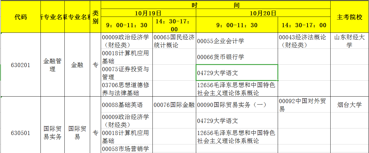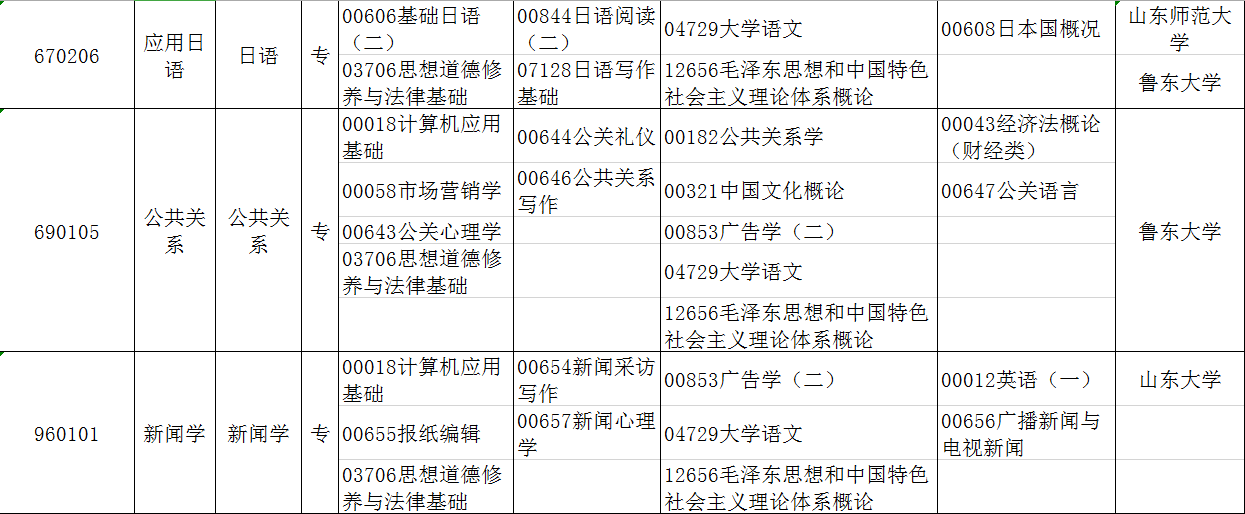 以上就是山東海浪教育為大家分享的有關于山東省高等教育自學考試2019年10月考試專業科目的內容,希望能夠對大家有所幫助!