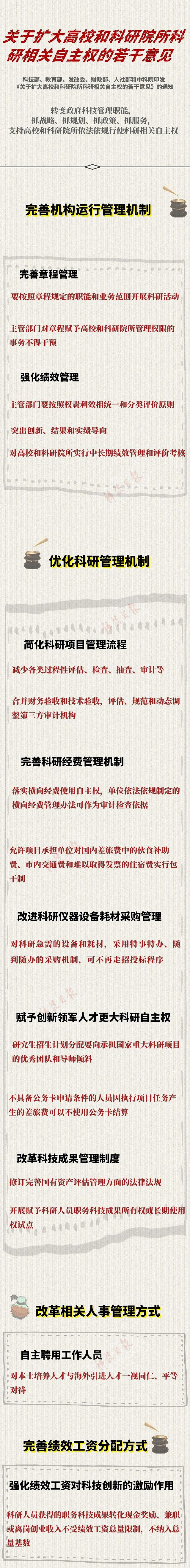 關于擴大高校和科研院所科研相關自主權的若干意見