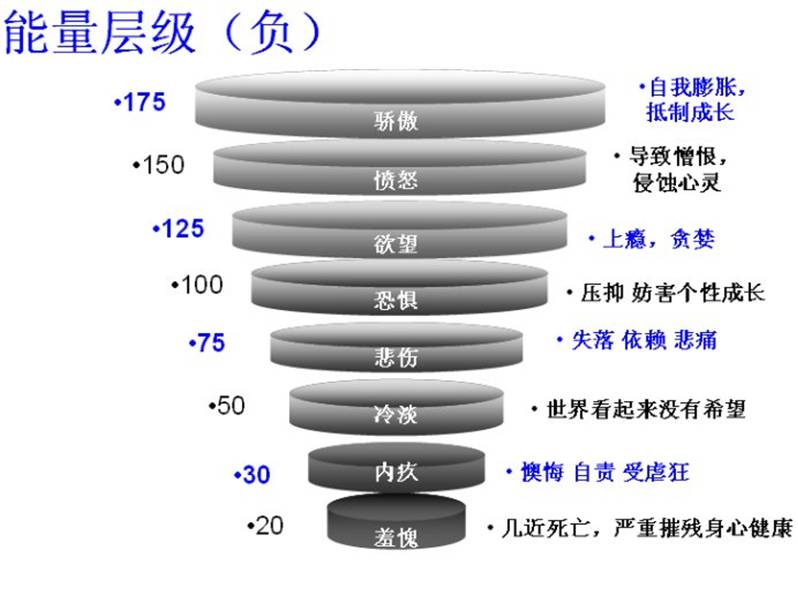 美國著名的精神科醫(yī)師大衛(wèi)霍金斯博士說:“很多人生病因為沒有愛,只有痛苦和沮喪,振動頻率低于200易得病。”他每天接觸到一千多個病人,他說他只要看到病人就知道這個人為什么生病,因為從病人身上找不到任何一個愛字,只有痛苦、沮喪整個包附著他全身。后來他發(fā)現(xiàn),凡是生病的人都是用負面的意念。