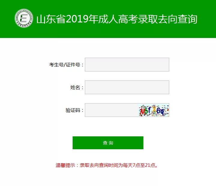 進入山東省教育招生考試院2019年成人高考錄取去向查詢界面(http://cx.sdzk.cn/crgklq/)