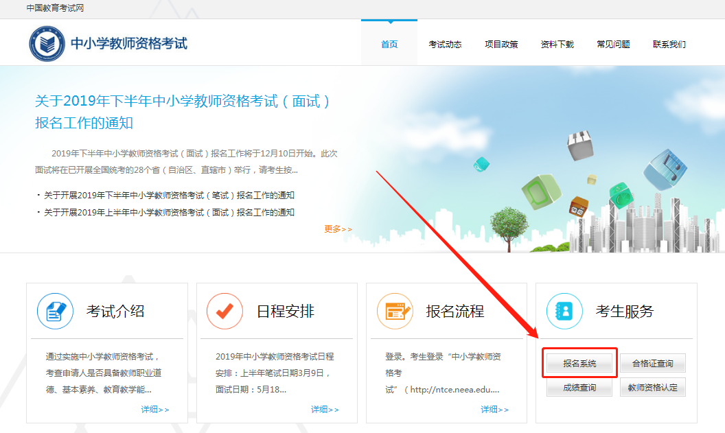 考生在規定時間內登錄教育部中小學教師資格考試網:ntce.neea.edu.cn