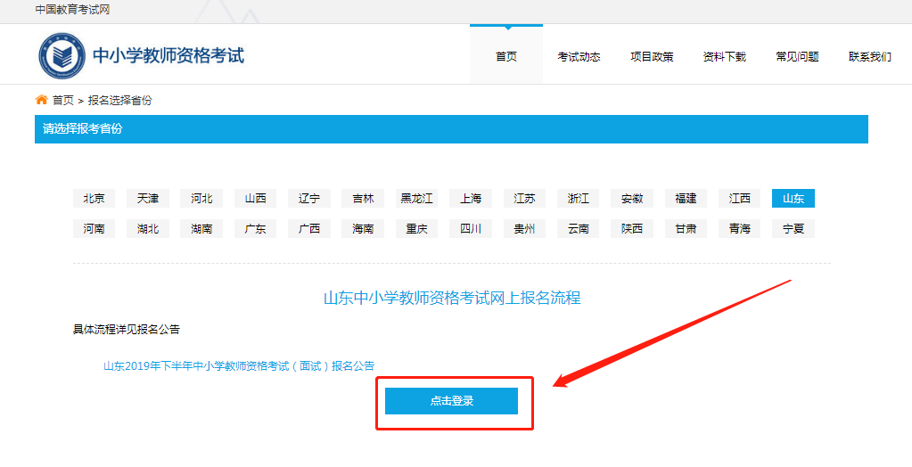 03.選擇報名省份考生進入報名系統后,選擇好報名省份,點“點擊報名”。