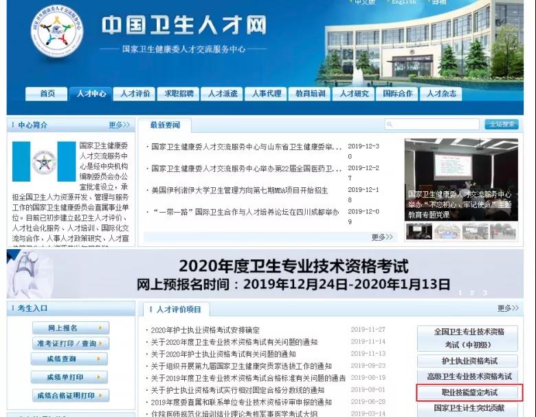 第一步:用瀏覽器打開中國衛(wèi)生人才網(wǎng)【http://www.21wecan.com/index_30.html】。進(jìn)入網(wǎng)站后,找到第一屏的右下位置,就是圖中紅框框的位置,點(diǎn)擊【職業(yè)技能鑒定考試】。