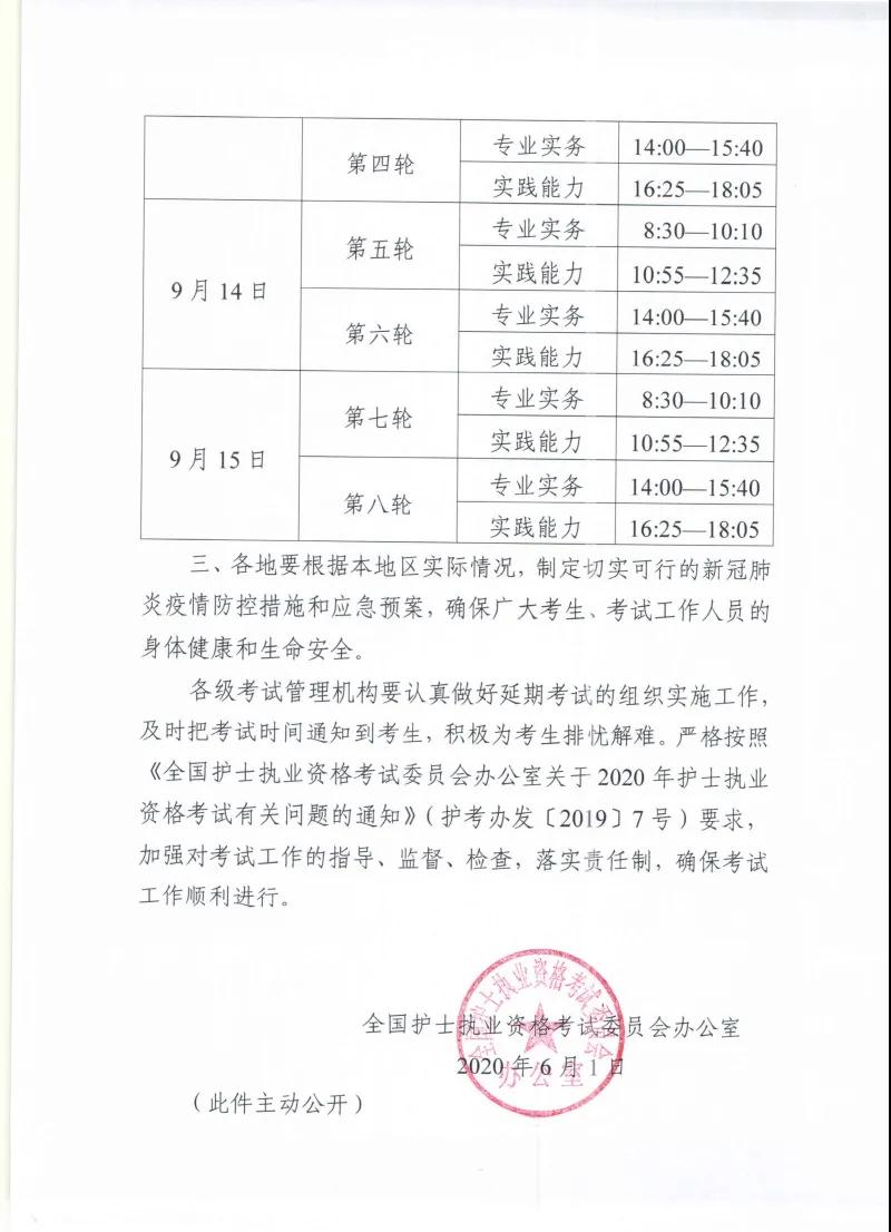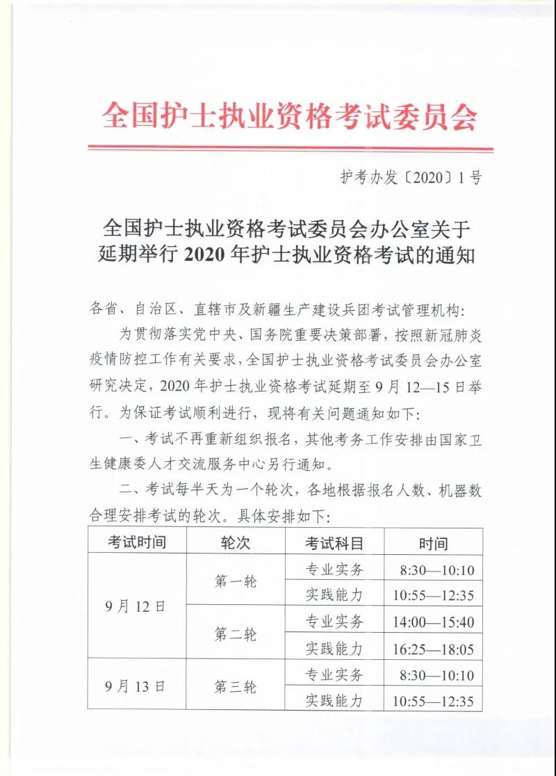 2020年護(hù)士執(zhí)業(yè)資格考試時(shí)間:延遲至9月12-15日;