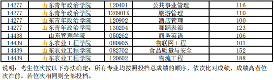 山東省2020年普通專升本補錄平行志愿投檔情況統計表