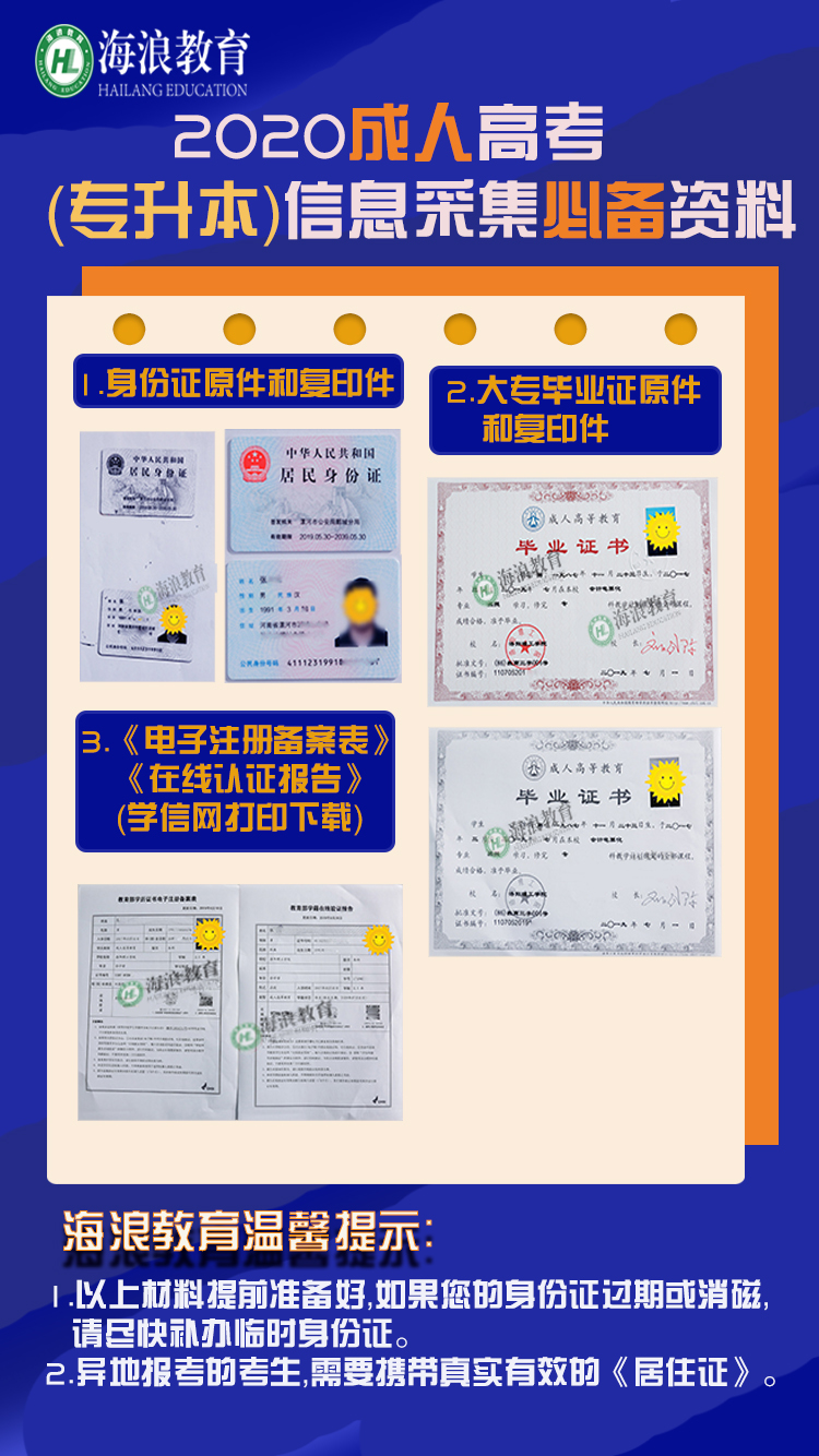 成考報名事關重要!尤其是涉及加分政策的,需要準備較多文件!大家務必要重視起來,不要因為報名問題而讓半年的努力付諸東流!