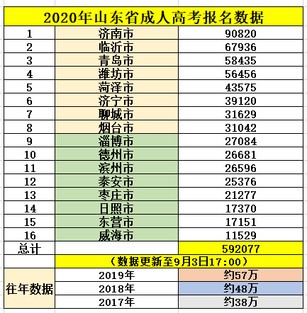 2020年山東省成人高考前三日報名人數達到592077人!!