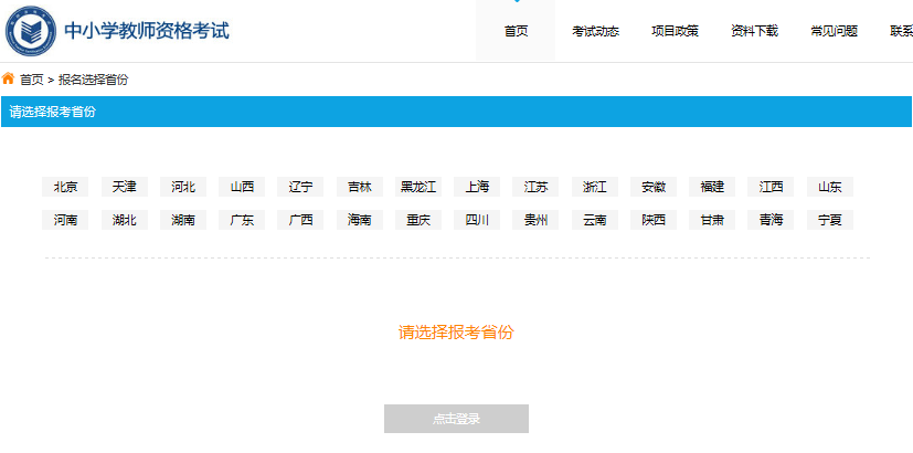 接下來選擇報考地點所在的省份,面試可以報考的地點和筆試是一樣的,社會考生可以在戶籍地或者能夠提供居住證的地方報考,在校生可以在學校所在地報考。