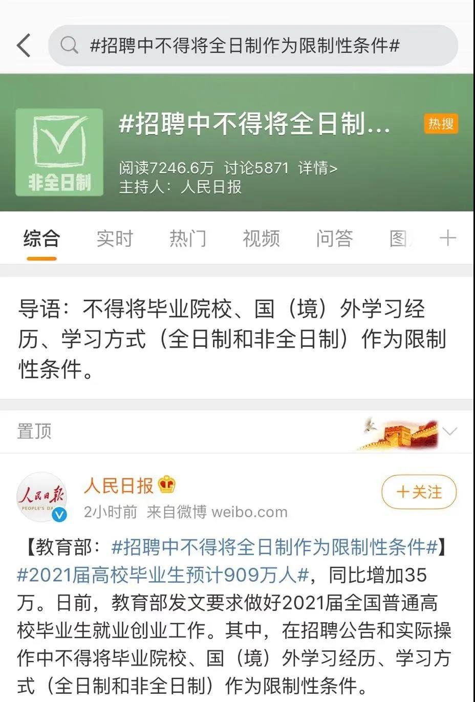 不得將畢業(yè)院校、是否全日制等作為招聘限制條件后,會影響全日制的競爭力嗎?