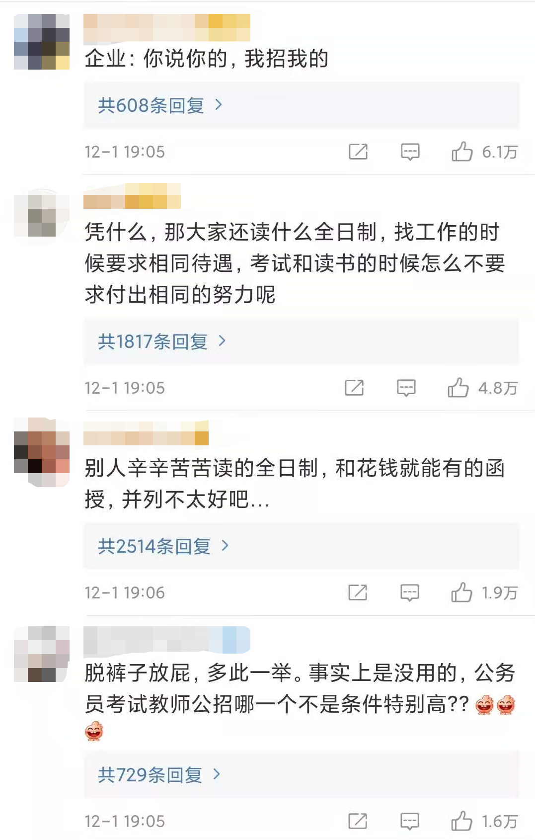 不是說全日制的競爭力變低了,而是給了非全日制的畢業(yè)生一個敲門磚的機(jī)會。