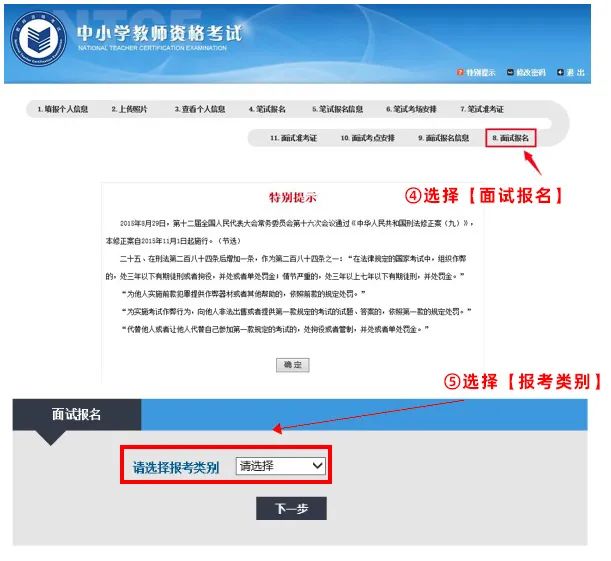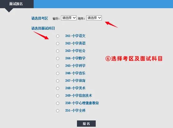 ②選擇科目:幼兒園面試不分科目;小學可以自行選擇所報面試科目,中學所選學科必須和筆試報考的學科能力一致。