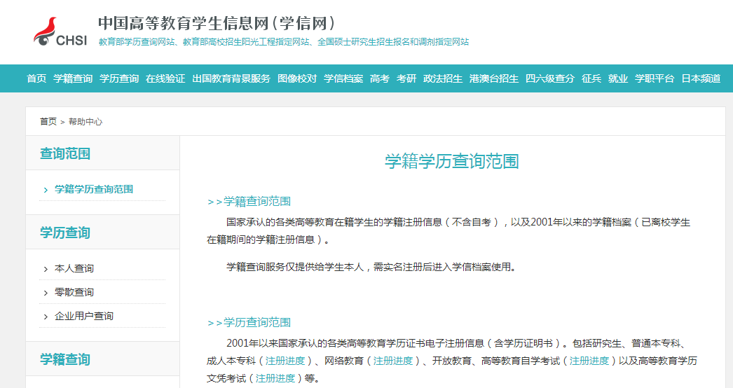 中國(guó)高等教育學(xué)生信息網(wǎng)(簡(jiǎn)稱(chēng)“學(xué)信網(wǎng)”)由全國(guó)高等學(xué)校學(xué)生信息咨詢與就業(yè)指導(dǎo)中心主辦,由中心控股的學(xué)信咨詢服務(wù)有限公司承辦。學(xué)信網(wǎng)教育部指定的學(xué)歷查詢唯一網(wǎng)站、教育部高校招生陽(yáng)光工程指定網(wǎng)站、全碩士研究生招生報(bào)名和調(diào)劑指定網(wǎng)站。學(xué)信網(wǎng)是教育部高校學(xué)生司指定的電子政務(wù)平臺(tái),網(wǎng)站依托中心建立的集高校招生、學(xué)籍學(xué)歷、畢業(yè)生就業(yè)和全國(guó)高校學(xué)生資助信息一體化的大型數(shù)據(jù)倉(cāng)庫(kù),開(kāi)通“陽(yáng)光高考”信息平臺(tái)、學(xué)籍學(xué)歷信息管理平臺(tái)、中國(guó)研究生招生信息網(wǎng)、全國(guó)高校學(xué)生資助信息管理平臺(tái)、內(nèi)地高校面向港澳臺(tái)招生信息網(wǎng)等平臺(tái),開(kāi)通學(xué)歷查詢系統(tǒng)、在線驗(yàn)證系統(tǒng)、碩士研究生網(wǎng)上報(bào)名和錄取檢查系統(tǒng)、碩士研究生招生調(diào)劑服務(wù)系統(tǒng)、全國(guó)高校學(xué)生資助管理系統(tǒng)、學(xué)歷認(rèn)證網(wǎng)上辦公系統(tǒng)等20余個(gè)電子政務(wù)系統(tǒng)和社會(huì)信息服務(wù)系。